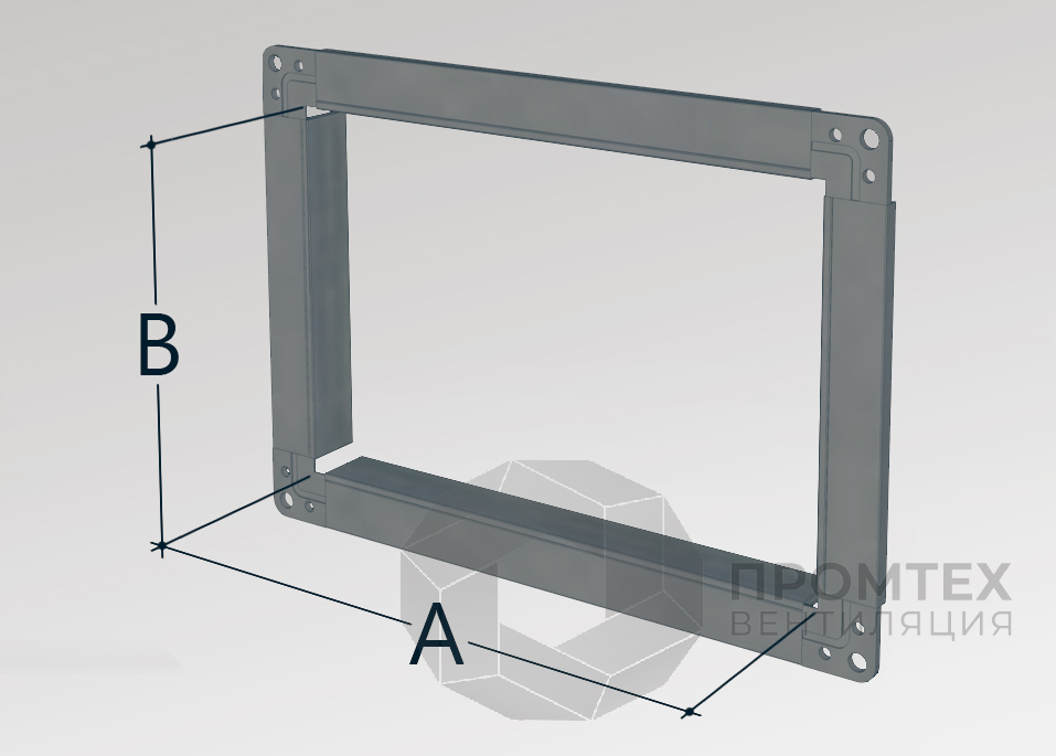 Фланец прямоугольный применяется для соединения воздуховодов и фасонных изделий прямоугольного сечения между собой. Фланец изготавливается из стального уголка и монтажной шины. В зависимости от сечения фланец может быть изготовлен из монтажной шины шириной 30 мм.